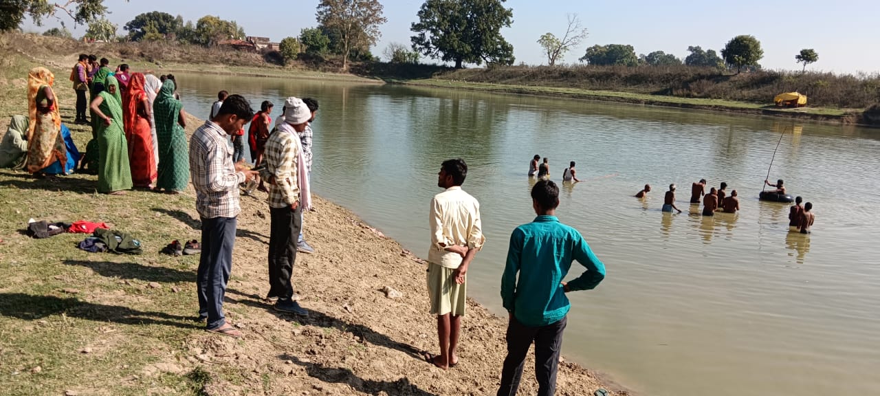 तालाब में डूबने से युवक की मौत मैहर के करैया देवरी गांव में , अर्ग देते समय युवक तालाब में डूबा , डूबने से युवक की हुई मौत, ग्रामीणों द्वारा युवक को बाहर निकलने का किया जा रहा प्रयास