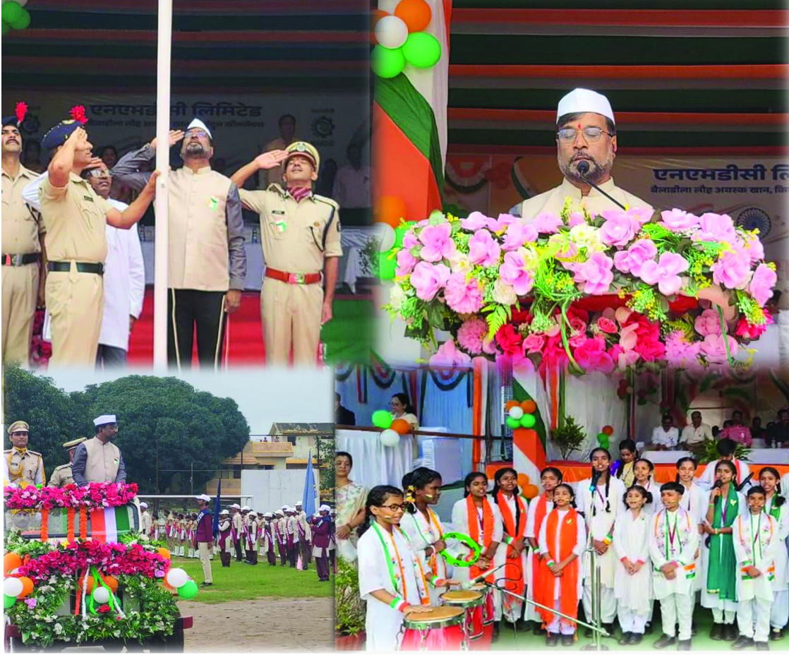 किरंदुल (दंतेवाड़ा), 15 अगस्त 2025 | भारत सरकार के नवरत्न सार्वजनिक उपक्रम एनएमडीसी लिमिटेड के बैलाडीला लौह अयस्क खान, बी.आई.ओ.एम. किरंदुल कॉम्पलेक्स में 79वां स्वतंत्रता दिवस उत्साह और देशभक्ति के माहौल में मनाया गया।